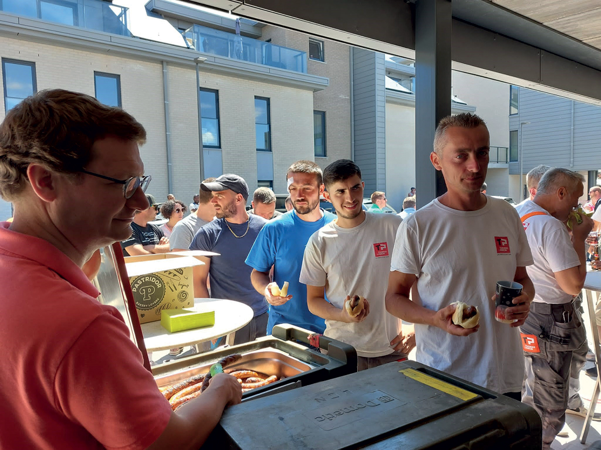 Cette année, nouveauté avant les congés du bâtiment chez Thomas & Piron Bâtiment, le personnel de chantiers et le personnel des bureaux se sont retrouvés sur 4 chantiers différents pour partager un moment de convivialité autour d’un pain saucisse. En effet, la demande avait été récurrente lors des World Cafés du projet d’entreprise : la connaissance des différents métiers et personnalités de l’entreprise pouvait apporter un vrai plus au travail de chacun.