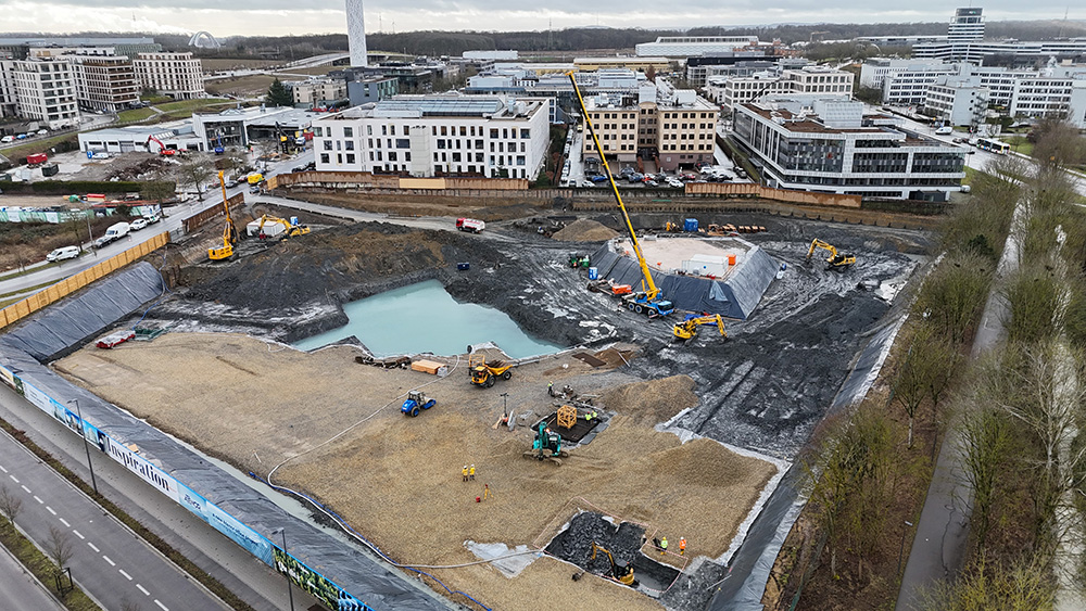 Voici une très belle référence dont la construction a démarré début janvier. Galère Lux, CBL et CLE Compagnie Luxembourgeoise d’Entreprises construisent le futur siège de PwC Luxembourg, au cœur du quartier d’affaires de la Cloche d’Or.