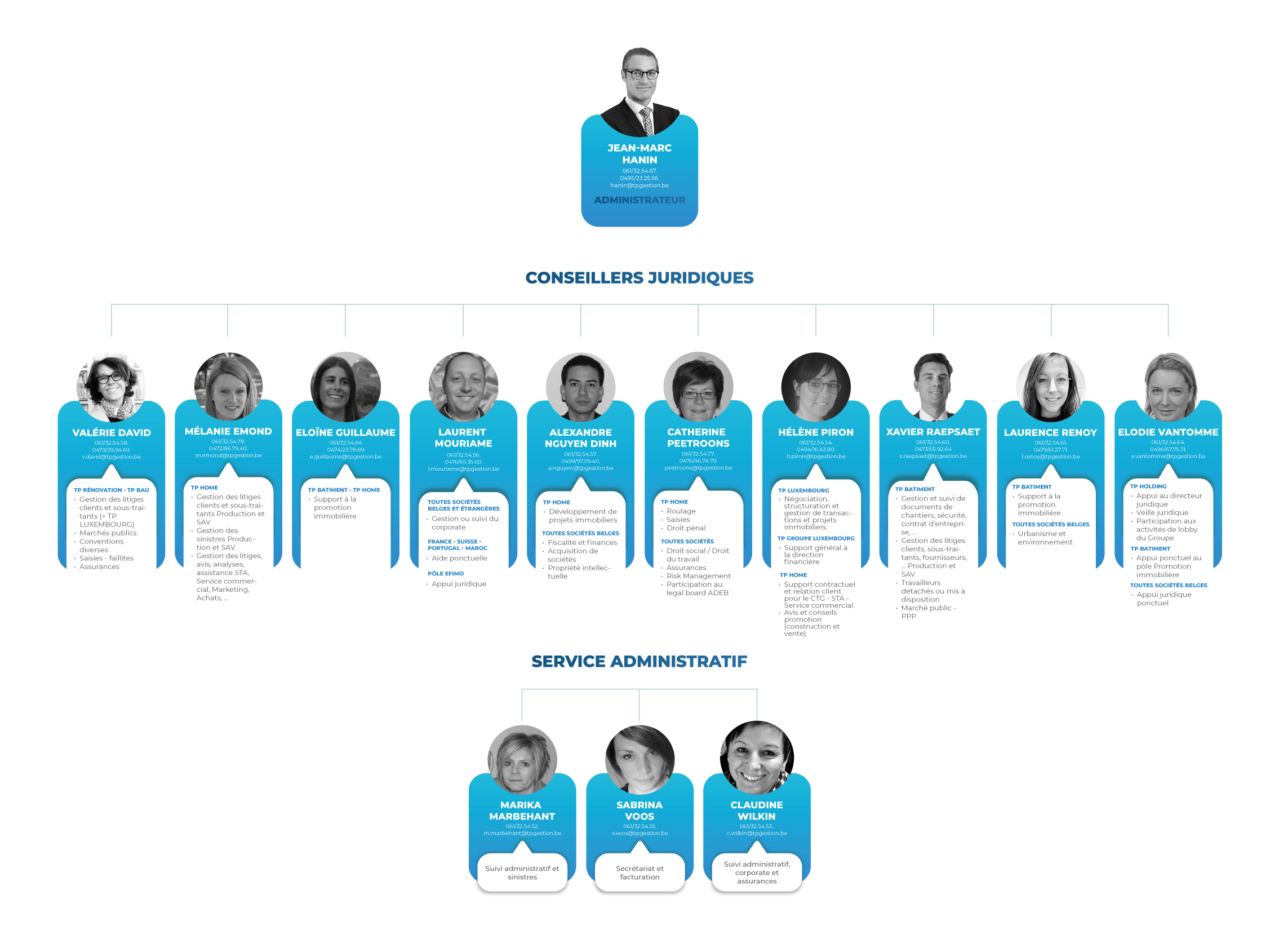 Vous trouverez ci-après un organigramme (évolutif) de l’entité, reprenant les missions de chacun : n’hésitez pas à le consulter dès qu’un besoin d’analyse, de conseil ou d’accompagnement survient. « Mieux vaut prévenir que guérir », « Un « Tiens ! » vaut mieux que deux « Tu l’auras » », et même « l’habit ne fait pas le moine » sont donc de circonstances pour terminer cet article !